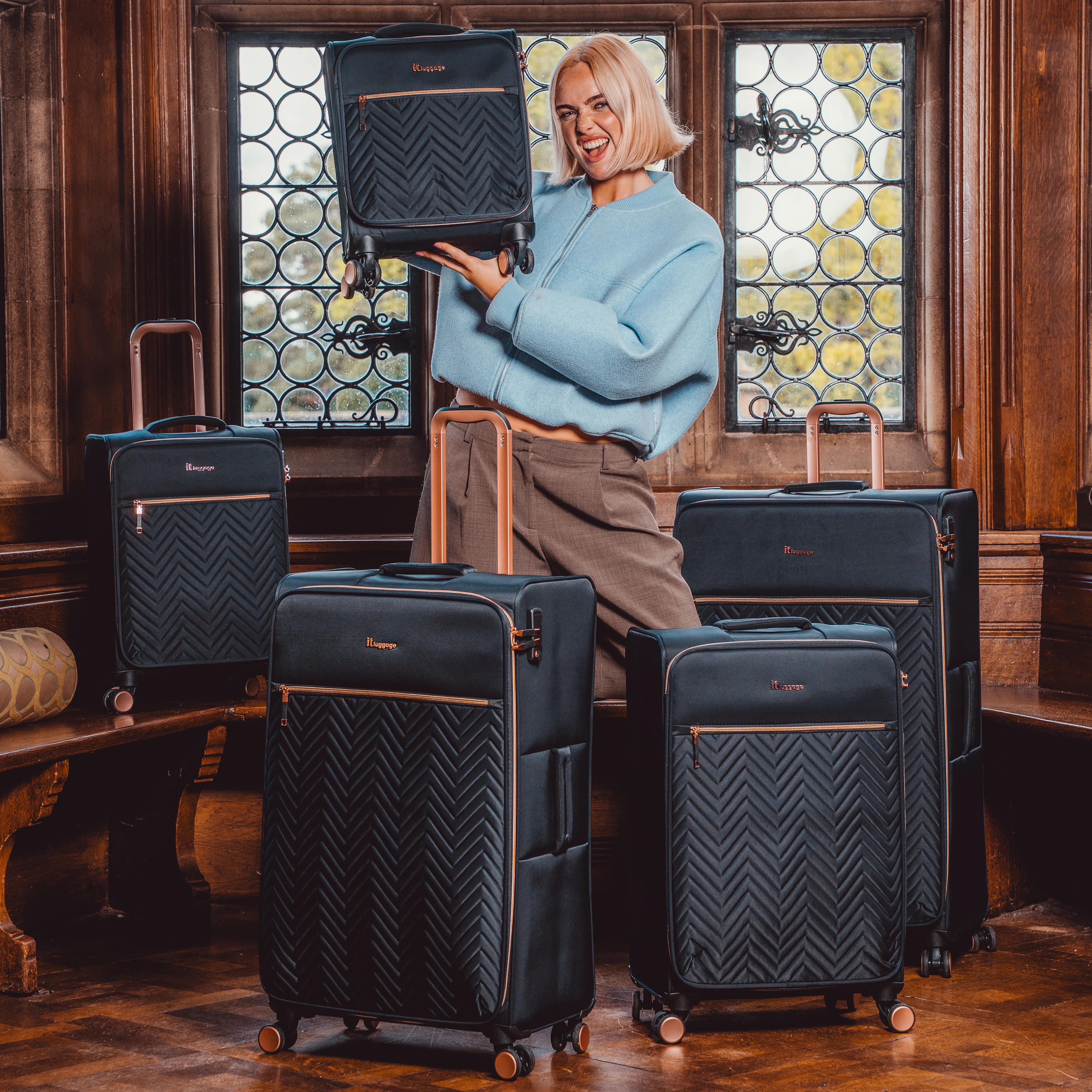 The trendy chevron quilted front panel, along with rose gold components and detailing gives the Bewitching underseat a luxurious look and feel, which is complemented by the stylish leopard-print interior.