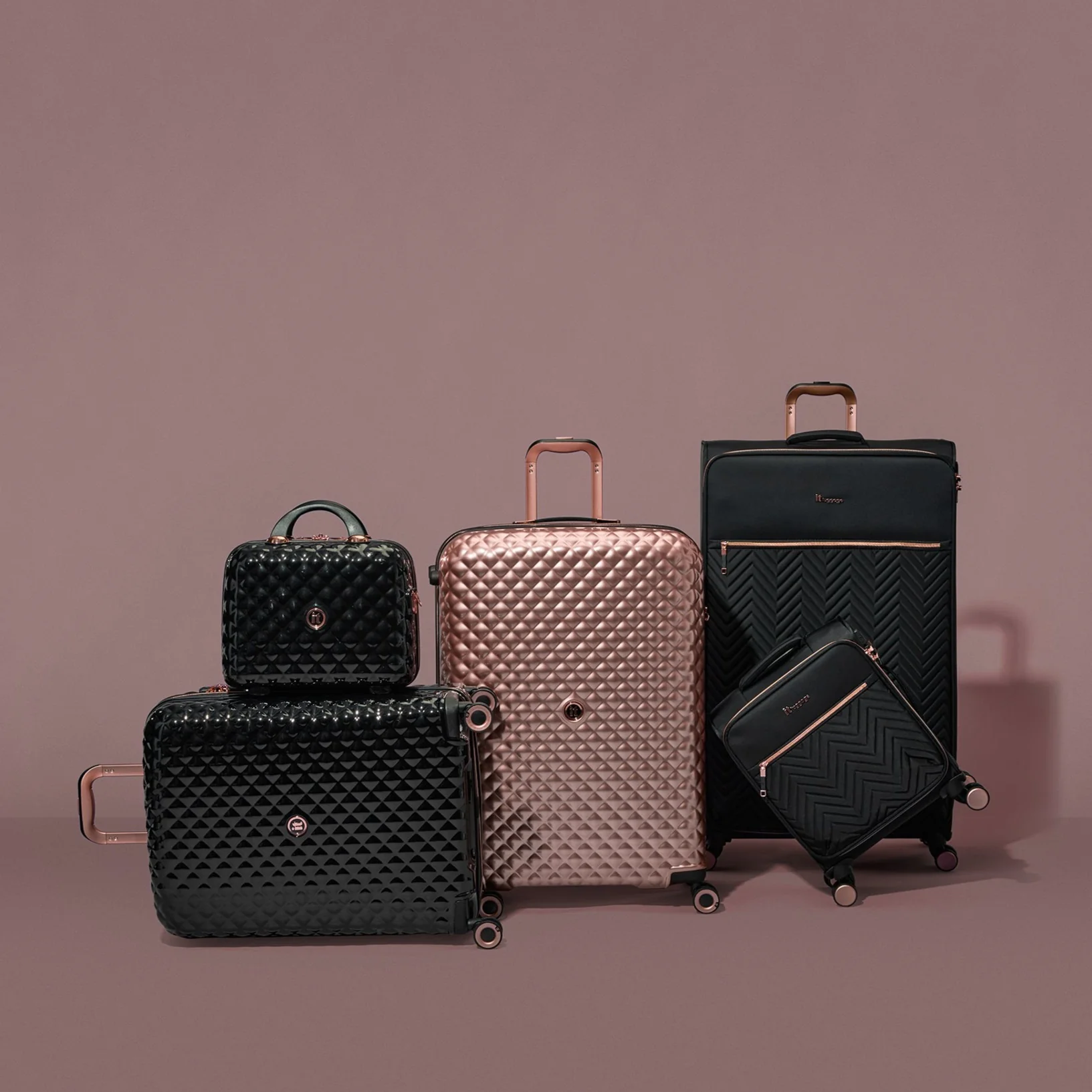 Each case in the set comes with a built-in Travel Sentry® Approved combination lock for complete security while travelling. *Excluding the vanity case.