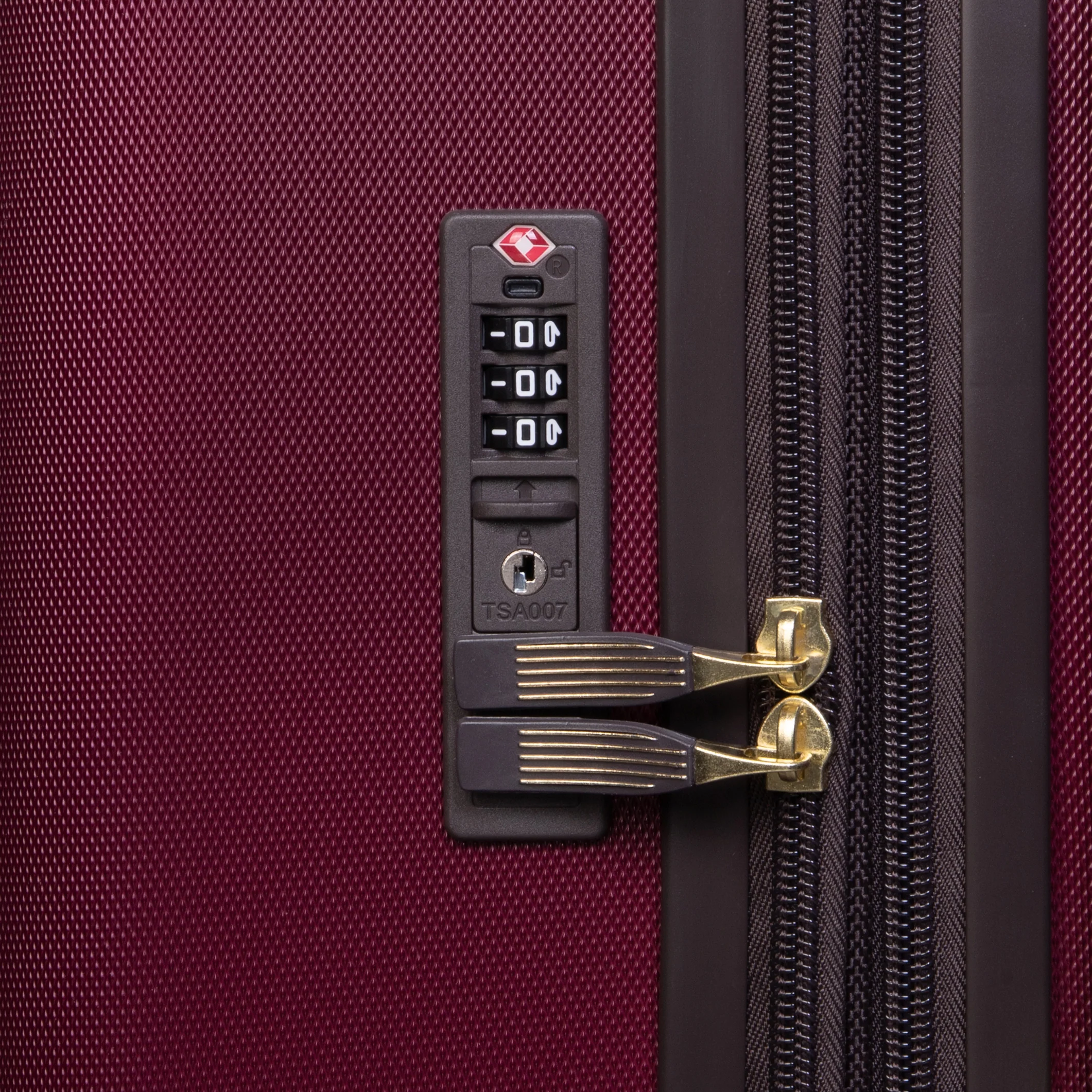 Features include a fixed Travel Sentry® approved combination lock providing complete security. Superior wheel control which has been constantly designed and tested to ensure the performance of our wheels lead the industry.